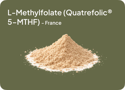 - L-Methylfolate (Quatrefolic®) – The most bioavailable form of folate, essential for neurotransmitter synthesis and methylation