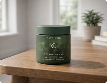 NeuroMito B12+ pairs Methylcobalamin (B12), L-methylfolate, and P5P (active B6) to help keep homocysteine in a healthy range, supporting blood-vessel lining and the nerves it supplies. This trio provides the raw materials for myelin maintenance and nerve repair while promoting smooth circulation—key for easing day-to-day tingling or numbness linked to borderline B-vitamin status. We add R-alpha lipoic acid for an extra layer of Neuro-antioxidant support inside nerve cells. The result with consistent daily use: calmer, better-fed nerves and neurovascular well-being - a smart, everyday way to look after your nerve health (especially useful if your lifestyle or medicines, like metformin, may impact B12 status; use under medical guidance)